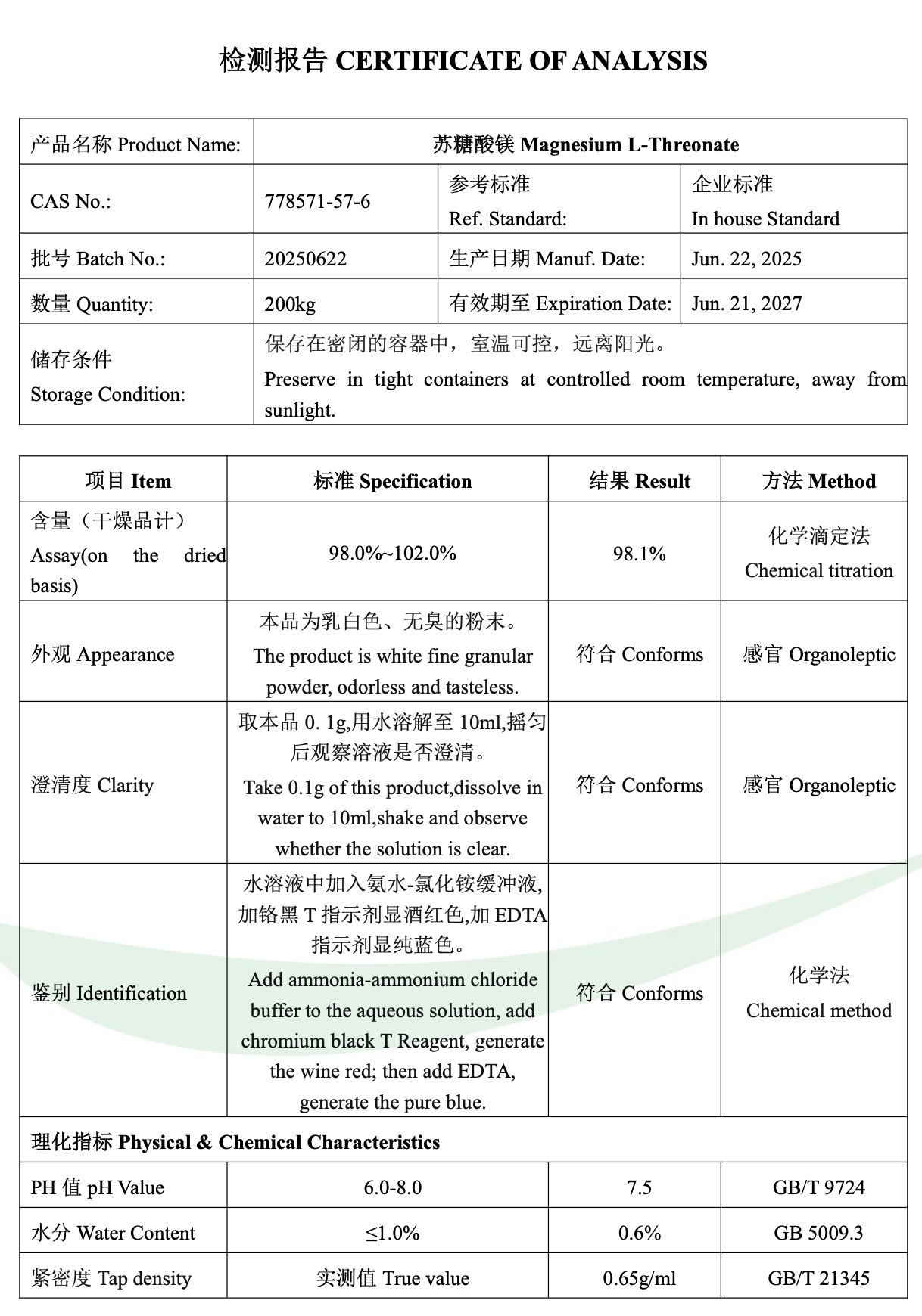 250 g Magnesium L-Threonat- (Pulver) - CAS 778571-57-6